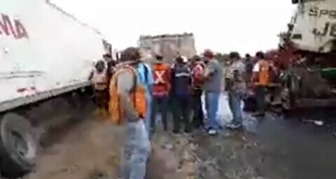 Un trailer se impactó contra la maquinaria que da mantenimiento a la carretera federal 57. El choque donde están involucrados varios vehículos ocurrió provocó el cierre de los dos carriles de San Luis Potosí a Querétaro