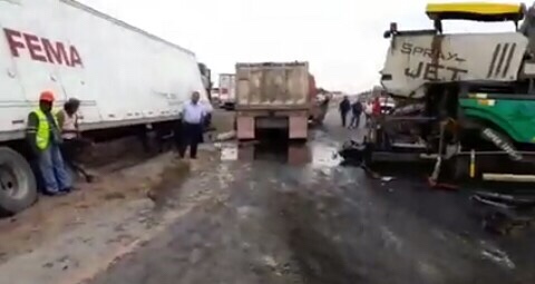 Fue la tarde de éste 23 de febrero del 2018 a la altura del kilómetro 58 adelante del parque industrial sobre el carril en dirección a Querétaro donde un trailer se impactó contra la maquinaria que está dando mantenimiento a la carpeta asfáltica. Luego otro trailer que trató de esquivar el choque salió de la cinta asfáltica quedando volcado en el acotamiento central.