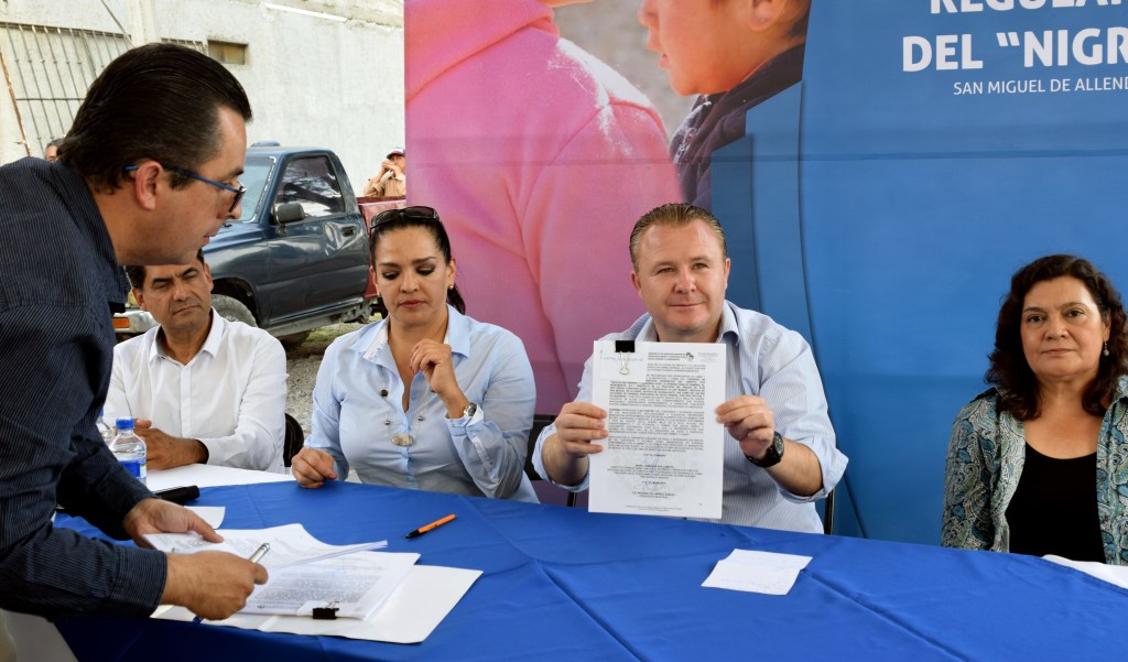 San Miguel de Allende, Gto.- El Gobierno Municipal y el Fondo Nacional de Habitaciones Populares (FONHAPO) firman histórico convenio para la regularización del desarrollo habitacional “Ignacio Ramírez, El Nigromante” A.C.; con lo que otorgan certeza jurídica a 600 familias.