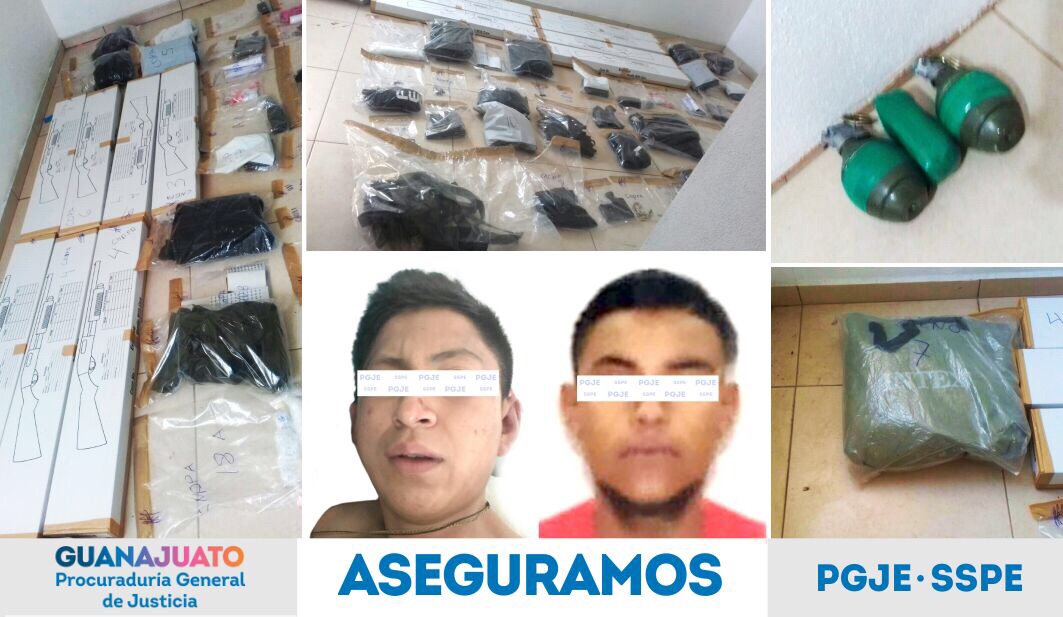 San José Iturbide, Gto. 28 de abril de 2018. La Procuraduría General de Justicia del Estado (PGJE), informa que se concretó la detención de un grupo delictivo en la colonia San José Campestre, de la ciudad de San José Iturbide, se les aseguró un gran arsenal, explosivos, chalecos tácticos y varias dosis de droga.