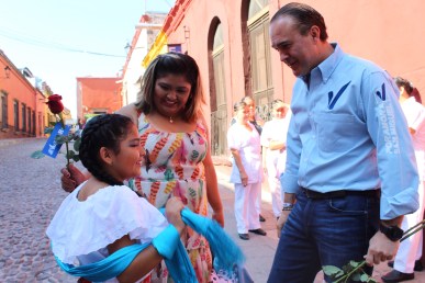 Luis Alberto inició el 10 de Mayo repartiendo rosas a las mujeres que caminaban por el Centro Histórico para después acudir a un desayuno con madres de familia de la colonia Ignacio Allende.
