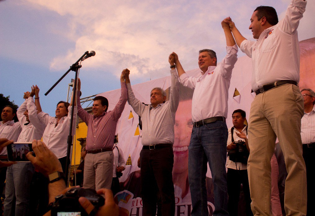 Por su parte el candidato presidencial Andrés Manuel López Obrador, pidió el voto y respaldo para todos, «vamos a lograr un 6 de 6 que nos lleve a tener la mayoría en los congresos, estados y municipios me sentiría muy incomodo de estár con otra gente con quienes me tendría que cuidar la cartera cuando me tocara hablar con ellos, por favor tenemos que votar en cascada por los candidatos del MORENA».