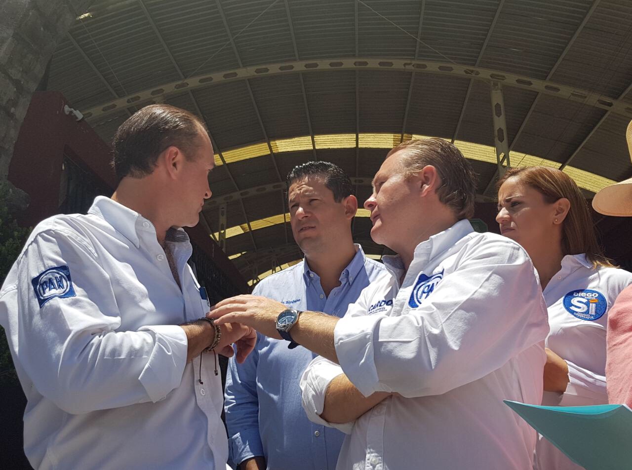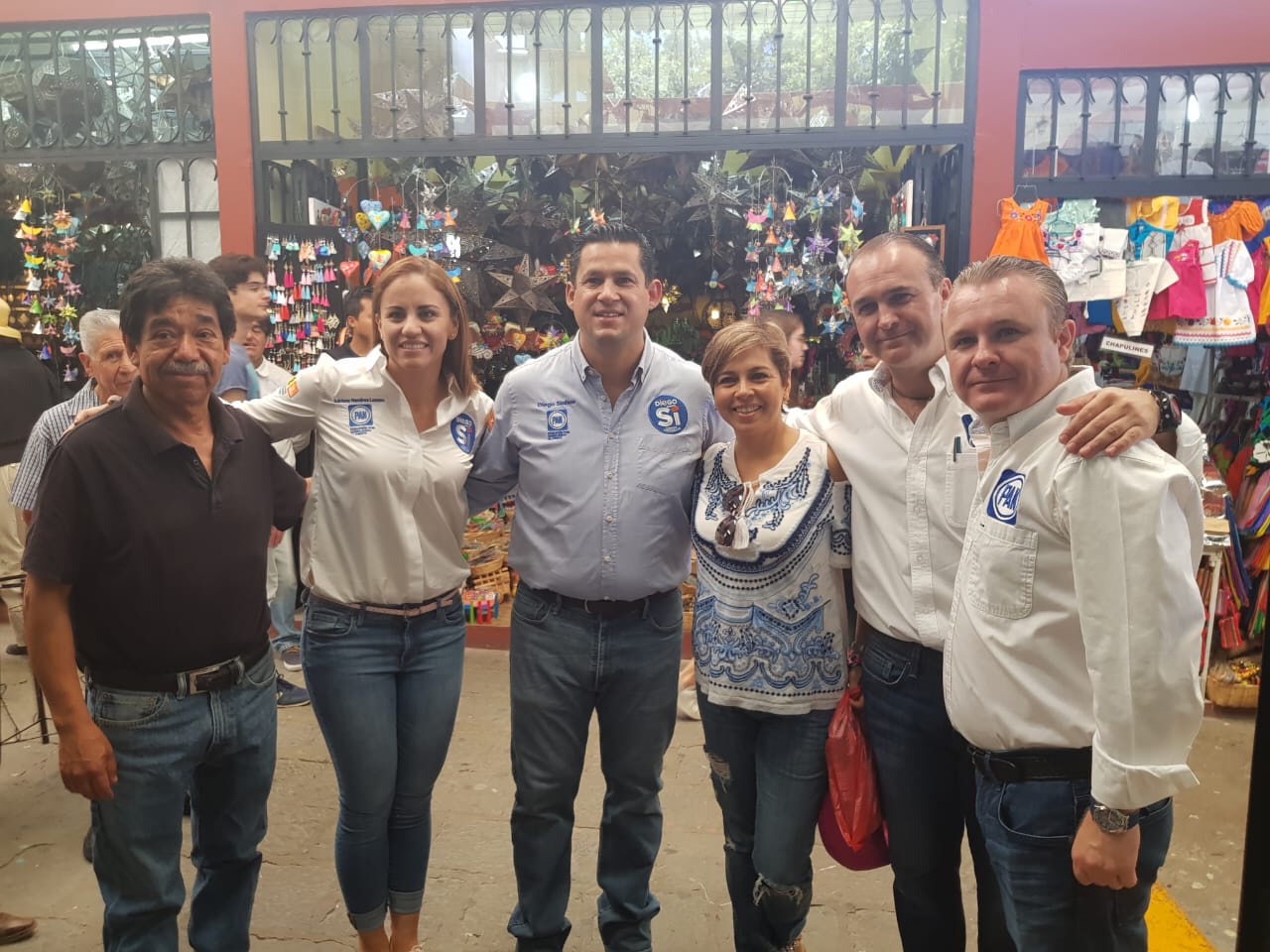 San Miguel de Allende, Guanajuato, 27 de mayo de 2018. – Durante una gira matutina, los candidatos del Partido Acción Nacional visitaron el mercado “Ignacio Ramírez”, además de pedir su voto local por local para el próximo 1 de julio, los contendientes empeñaron su palabra en acciones benéficas para los sanmiguelenses; destaca el compromiso de Diego Sinhué para apoyar desde el Gobierno del Estado la obra del paso a desnivel en “Salida a Celaya”.