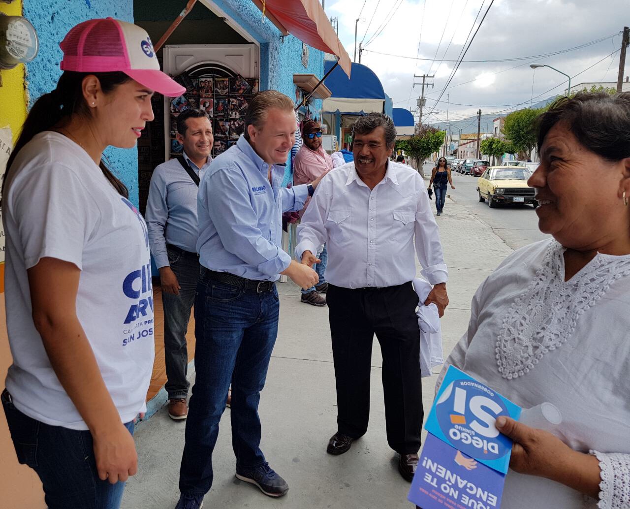 A lo largo de la avenida principal del centro de San José Iturbide, Ricardo Villarreal recorrió los negocios y tuvo oportunidad de pedir el voto de los ciudadanos, pero sobre todo, ejercer un compromiso de ayudar a la próxima alcaldesa, Cindy Arvizu, derivado de su experiencia para aplicar recursos e implementar programas de apoyos a las familias.