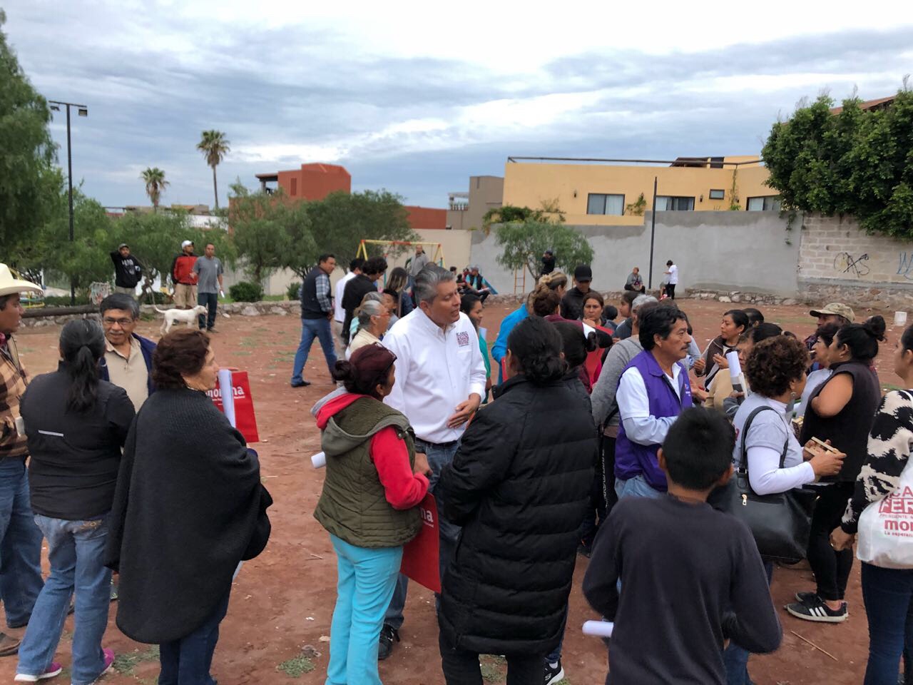 Terminando el recorrido en la zona centro el candidato se reunió con los habitantes del Barrio de la palmita quienes manifestaron su molestia por la falta de cumplimiento a las promesas realizadas por la actual administración municipal puesto que a base de engaños les arrebataron parte del área verde de la colonia para darle acceso a los habitantes del desarrollo capilla de piedra, aunado a ello manifestaron la falta de inclusión en los programas de asistencia social toda vez que condicionaron la llegada de los mismos a cambio de que se les favoreciera con el voto a uno de los candidatos que participa en el presente proceso electoral.