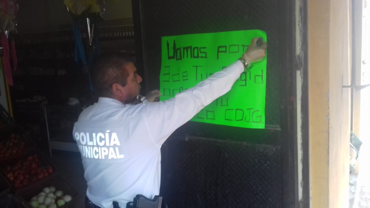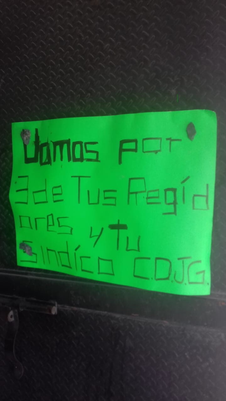Berenice Alba dijo detalló que se trata de cartulina de color verde con las siglas CDJG y que al parecer estaba escrito con gis. Confesó que su candidato está preocupado y que es necesario darle protección. La representante de Morena ya enteró de esto a Mauricio Guzmán Yáñez, presidente del IEEG.