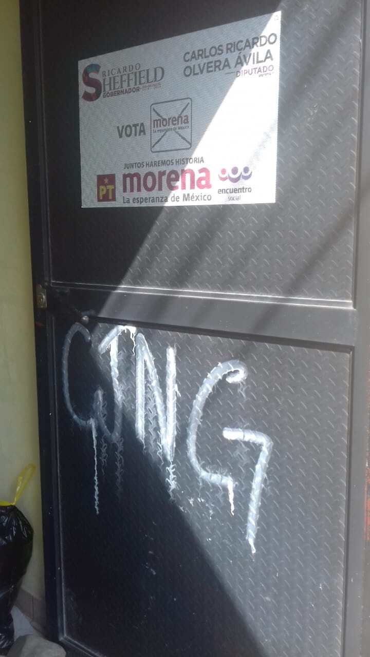 El candidato a diputado federal por Morena Carlos Olvera Ávila fue amenazado presuntamente por un grupo delictivo; hoy jueves por la mañana encontró en la puerta de su casa de campaña una cartulina con el mensaje “vamos por tres de tus regidores y por tu síndico”.