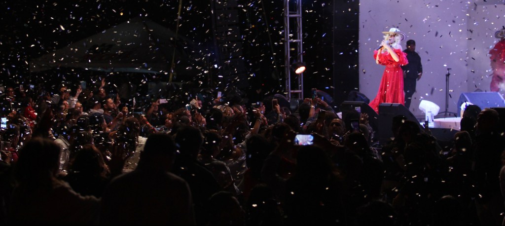 San Miguel de Allende, Gto.– Durante casi dos horas, la cantante veracruzana Yuri, cautivó a cientos de sanmiguelenses con los éxitos de sus cuatro décadas de trayectoria; este concierto marcó el cierre de las celebraciones del nombramiento de San Miguel de Allende como Ciudad Patrimonio.