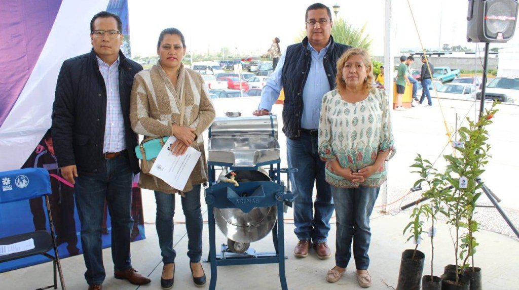 En la entrega, realizada en la explanada del edificio administrativo, estuvo además Osvaldo García, director de Desarrollo Social y Humano y Rosa Elvira Juárez Arellano, beneficiaria del programa de molino de nixtamal y María Flor López López, quien obtuvo uno de los paquetes frutales.