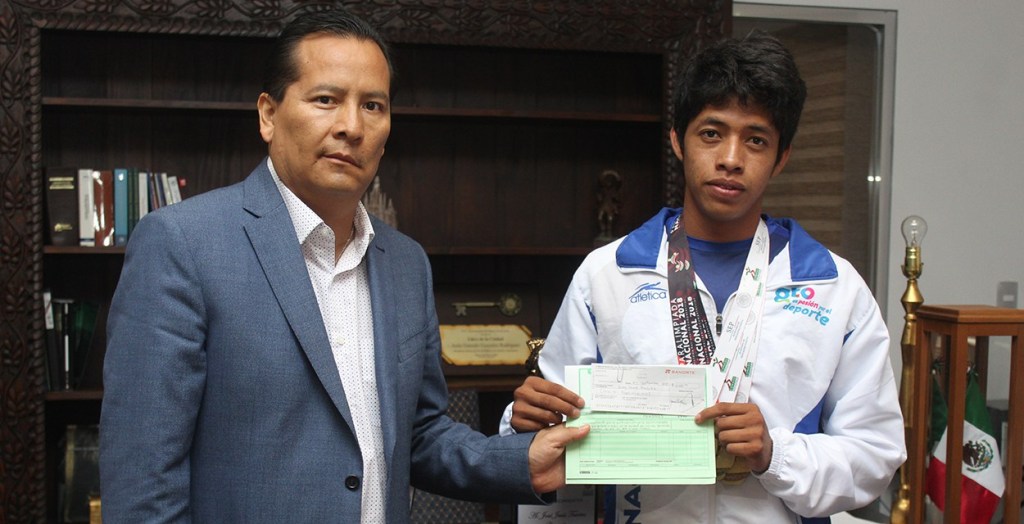 El joven de 20 años de edad, ganó el primer lugar en atletismo en 800, mil 500 y 5 mil kilómetros, es originario de la comunidad “Ciénega de Juana Ruiz”; desde el año 2015 la administración municipal lo becó para financiar su transporte, honorarios del entrenador, uniformes y viáticos.