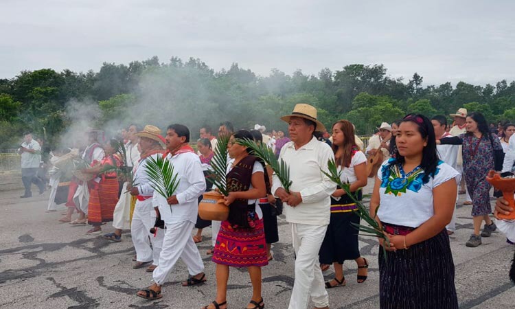 En el ritual, que se llevó a cabo en la antigua pista de aterrizaje del municipio de Palenque, y donde se construirá una de las terminales del tren, participaron las 12 etnias mayas asentadas en la región; además se realizó de manera simultánea en Edzna y Becán, Campeche; Chichén Itzá, Yucatán; Tenosique, Tabasco, y Tulum, Quintana Roo.