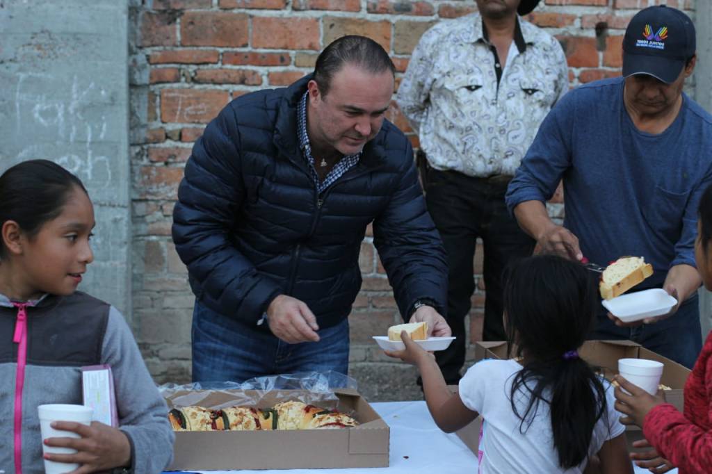 San Miguel de Allende, Gto.– Habitantes de la comunidad “Nuevo Pantoja” compartieron con el Presidente Municipal, Luis Alberto Villarreal, la tradicional rosca de “día de reyes”, además de entregar más de 300 juguetes a niñas y niños; durante la convivencia, el munícipe comprometió aplicar el programa de Acción Renovada para mejoramiento de calles.