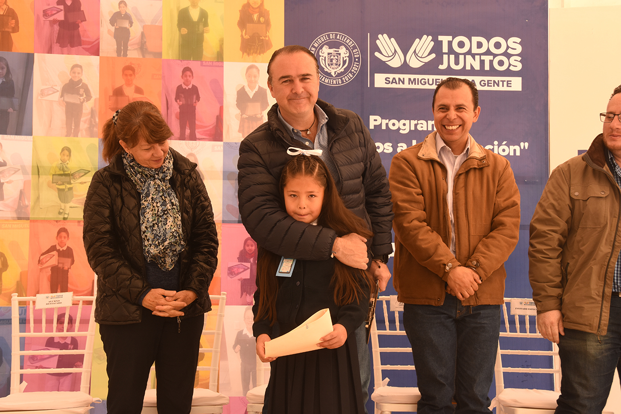 San Miguel de Allende, Gto.- Durante la tercera entrega de “Estímulos a la Educación” en la comunidad “San José de los Allendes”, el Presidente Municipal Luis Alberto Villarreal, destacó que las premisas de este programa son dar libertad a través de la cultura en los estudiantes y la igualdad sin importar condición social.