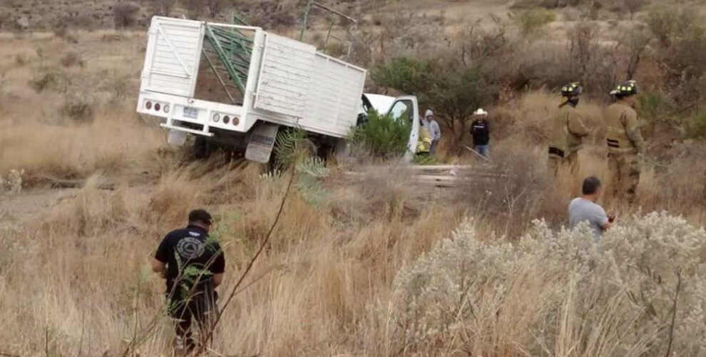 La camioneta en la que cargaba estructuras metálicas, que con el movimiento brusco que hizo el vehículo al descender fueron cayendo en el campo.