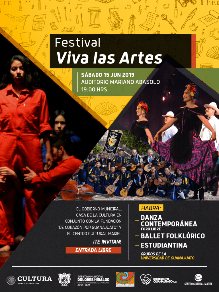 DOLORES HIDALGO CUNA DE LA INDEPENDENCIA NACIONAL, GTO.- La Administración Municipal 2018-2021 a través de la Casa de la Cultura, la Fundación de Corazón por Guanajuato y el Centro Cultural Mariel, invitan a la ciudadanía en general a la presentación del festival “Viva Las Artes”.