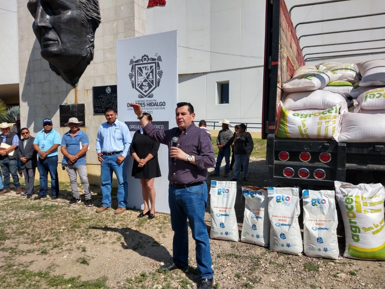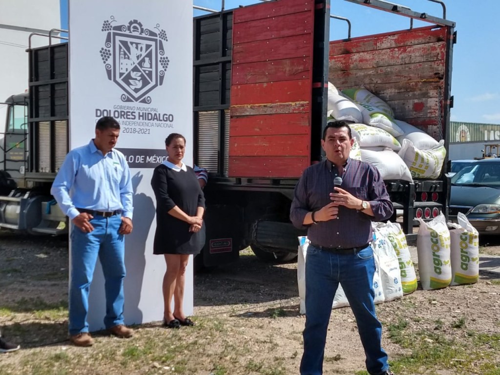 # Dolores Hidalgo. El presidente municipal Miguel Ángel Rayas Ortiz encabezó la entrega de apoyos para productores del campo dolorense.