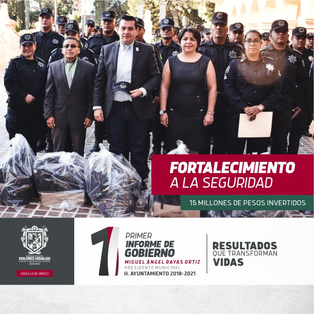 DoloresHidalgo; Cuna de la Independencia Nacional.- Fortaleciendo la operatividad y seguridad de nuestros agentes de Seguridad Pública Municipal, el Presidente Miguel Ángel Rayas Ortiz y la Administración 2018-2021 les entregaron uniformes y equipo táctico.