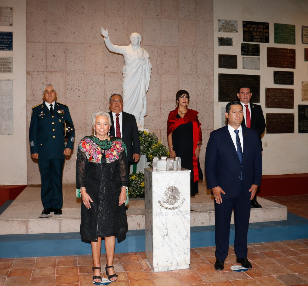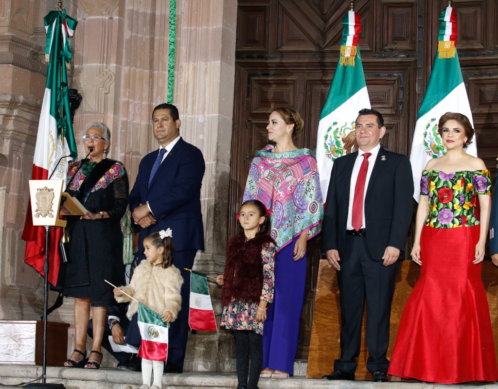 La Secretaria de Gobernación Dra. Olga Sánchez Cordero junto con el Gobernador del Estado Lic. Diego Sinhué Rodríguez, la Presidenta del Supremo Tribunal de Justicia del Estado Lic. María Claudia Rangel, el Diputado local José Huerta Aboytes en representación del Congreso del Estado, el General de Brigada de la XII zona militar Miguel Hurtado Ochoa y el Presidente Municipal Miguel Ángel Rayas presidieron la ceremonia cívica más vibrante en el país, en el mismo lugar de los hechos históricos.