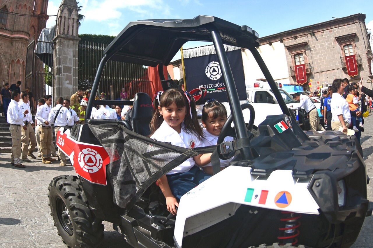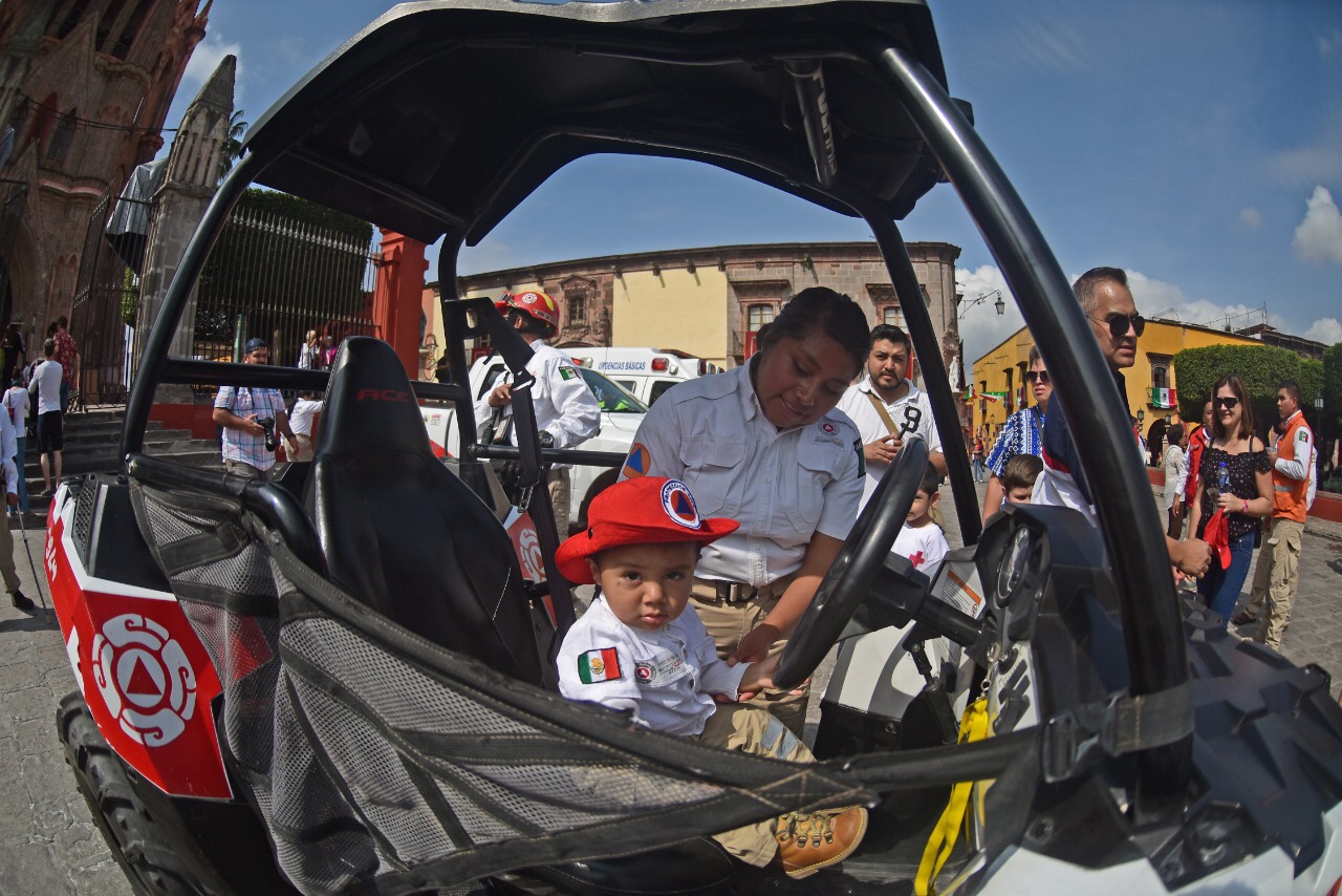 San Miguel de Allende, Gto, a 18 de septiembre de 2019.- Para conmemorar la creación del sistema de Protección Civil Nacional y el trabajo realizado durante los sismos ocurridos el 19 de septiembre de 1985 y 2017, el Gobierno Municipal, a través de la Secretaría de Seguridad Publica, Tránsito Municipal y Protección Civil, realizaron un desfile éste miércoles por la mañana.