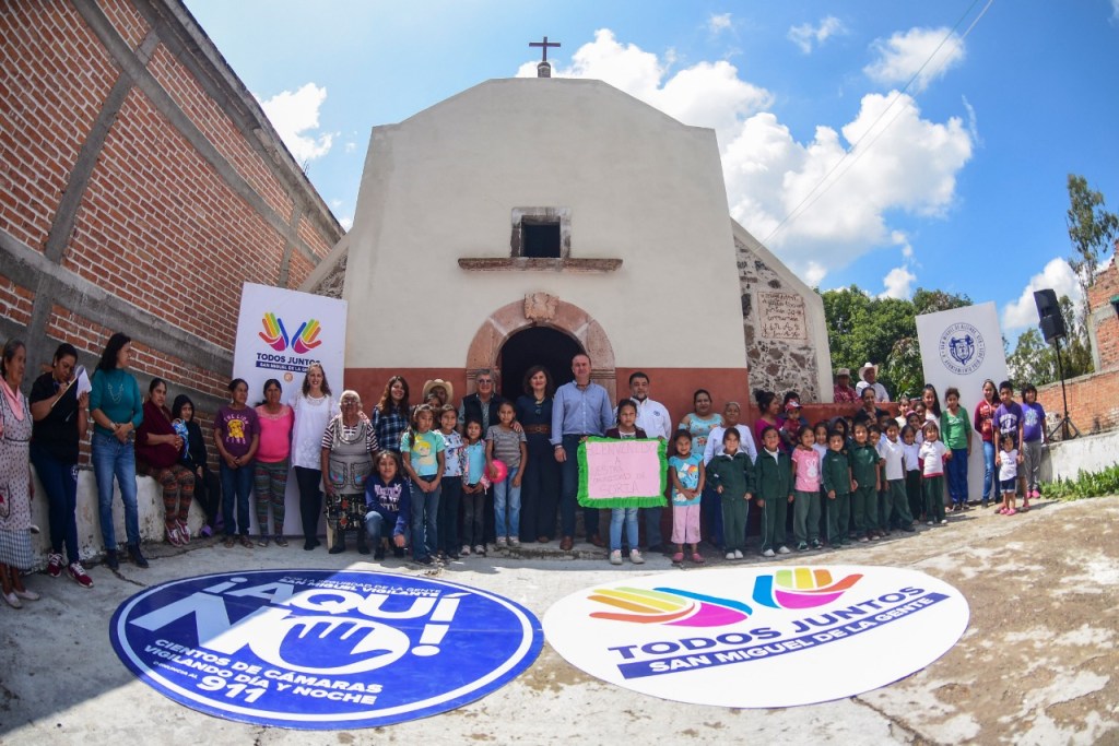 San Miguel de Allende, Gto., a 01 de octubre de 2019.- En el marco de las celebraciones por el nombramiento del municipio como Capital Americana de la Cultura, el alcalde Luis Alberto Villarreal, entregó a los habitantes de Soria la obra que se realizó en la Capilla de la Santa Cruz.