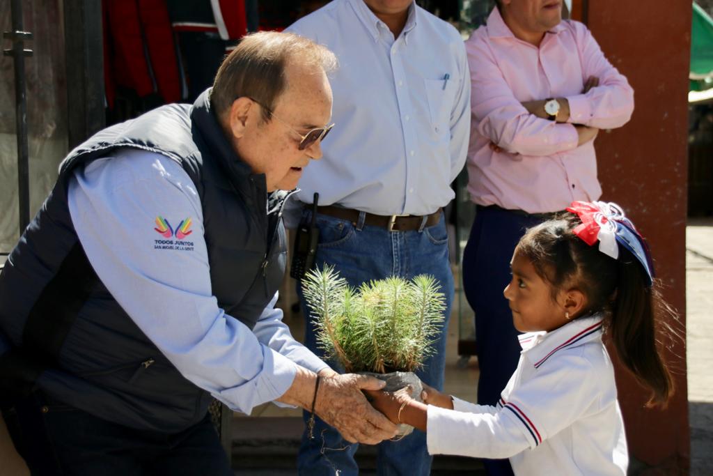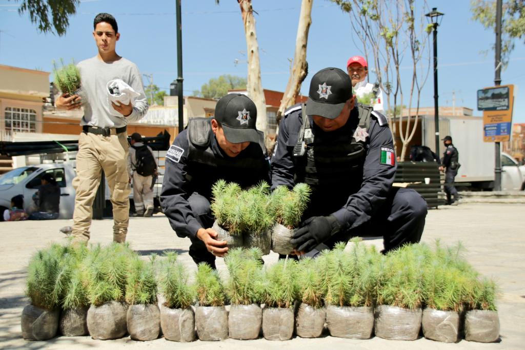 San Miguel de Allende, Gto., a 16 de octubre de 2019.– Con el principal objetivo de mantener un San Miguel de Allende sustentable, el Vivero Militar ubicado en la ciudad de Querétaro donó a través de la Secretaría de Seguridad Pública 2 mil árboles tipo Pino, los cuales fueron entregados en Plaza Parián.