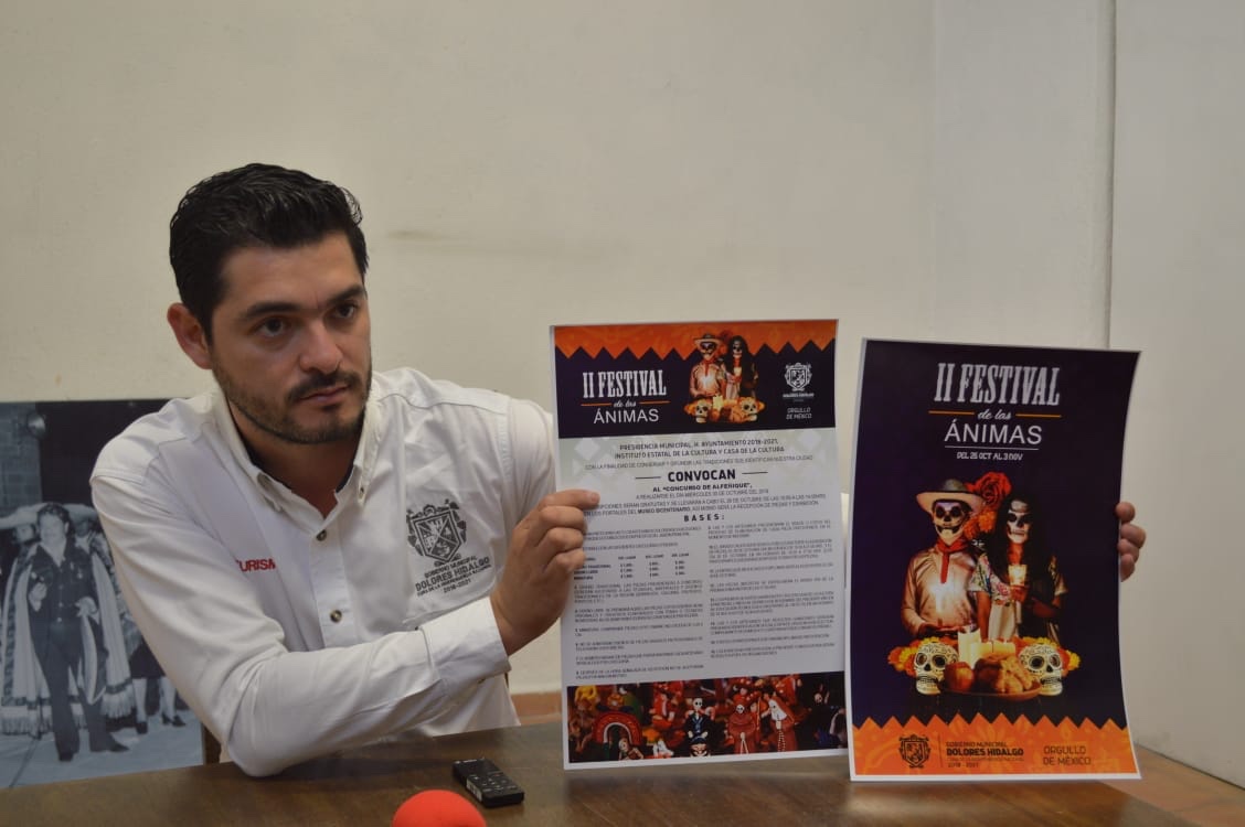 Dolores Hidalgo.- El encargado de despacho de la dirección municipal de Turismo, Norberto Martínez Cabrera, informó a detalle sobre el Festival de las Ánimas a realizarse del 25 de octubre al 3 de noviembre del presente 2019.