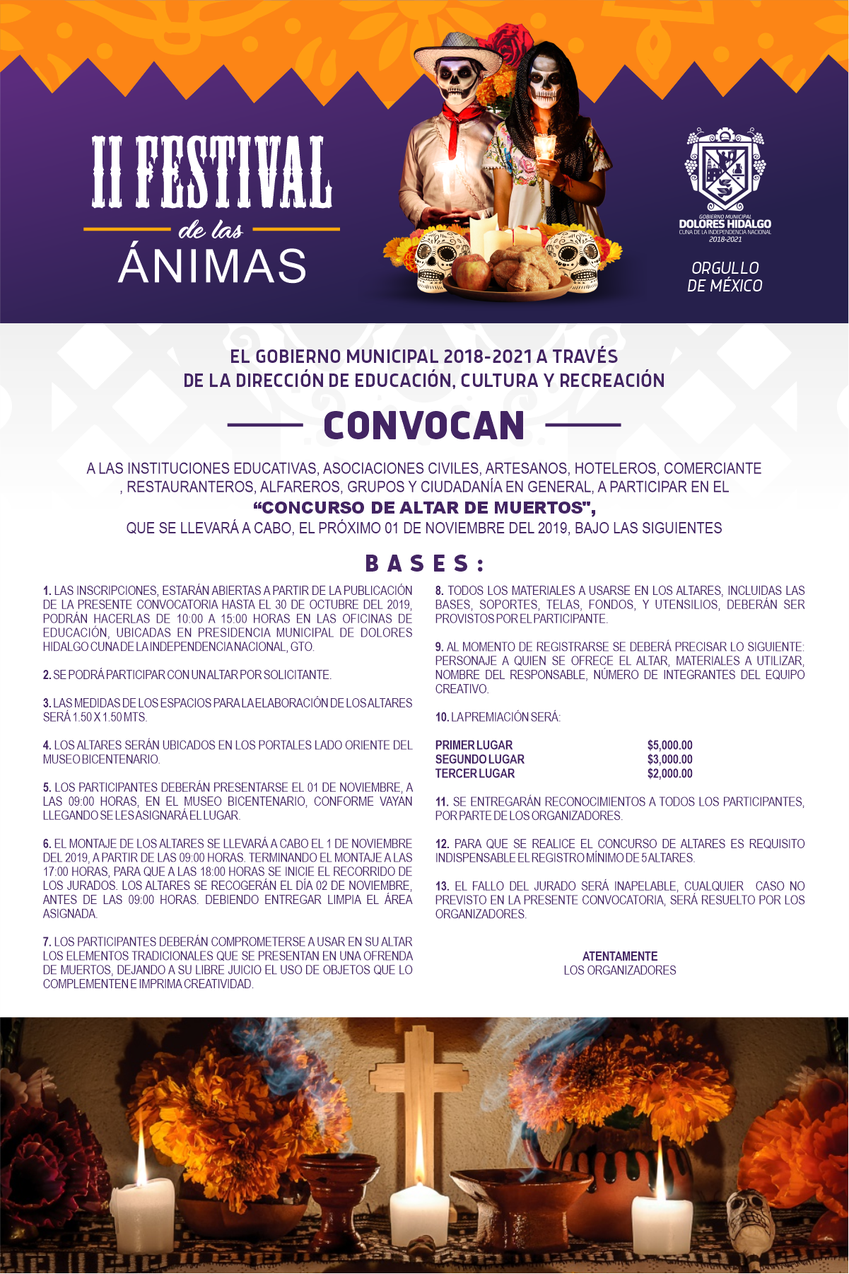 Otro concurso será el de elaboración de altares de muertos, evento organizado por el gobierno municipal a través de la dirección de Educación, Cultura y Recreación. Este evento se llevará a cabo el día 1 de noviembre en los portales del museo Bicentenario.