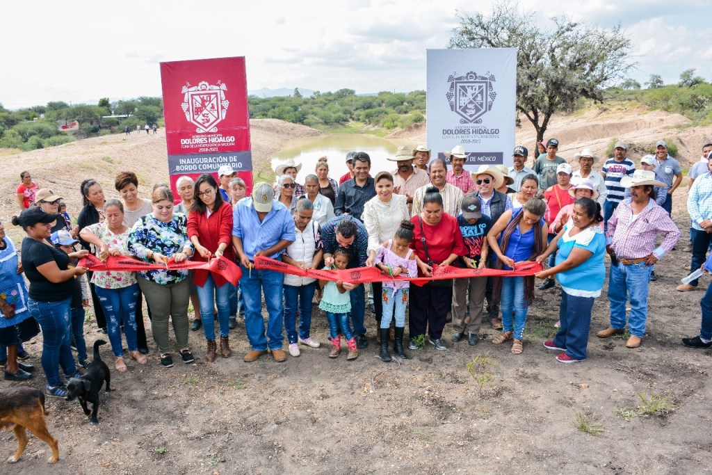 DOLORES HIDALGO CUNA DE LA INDEPENDENCIA NACIONAL, GTO.- El Alcalde Miguel Ángel Rayas Ortiz, Regidoras y Regidores de la Administración Municipal 2018-2021 junto con los habitantes de San Francisco de la Erre inauguraron un nuevo bordo comunitario en las misma comunidad, mismo que les permitirá captar agua lluvia, almacenarla y su posterior consumo ganadero.