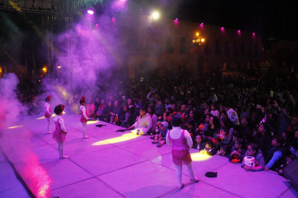 DOLORES HIDALGO CUNA DE LA INDEPENDENCIA NACIONAL, GTO.- Familias dolorenses salieron a las calles del Centro Histórico para disfrutar de una noche adornada con coreografías musicales alusivas al día muertos, la expo galería fotográfica de la Catrina y los altares dedicados a personajes reconocidos por su labor altruista, obras y trayectoria musical.