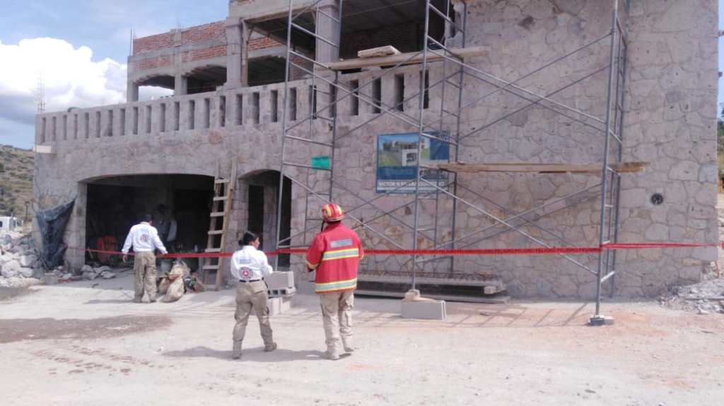 San Miguel de Allende, Gto., a 04 de noviembre del 2019.- Tras la caída de un colado en un segundo piso, el Gobierno Municipal a través de la Dirección de Protección Civil clausuró una obra al interior del conjunto habitacional privado en el Club de Golf Malanquín, por no contar con las medidas de seguridad pertinentes.