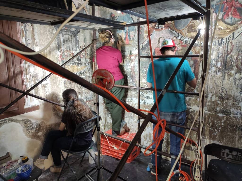 Con equipo especial de restauración y la supervisión de los docentes, los estudiantes hicieron procesos de reintegración de pinturas bajo un programa iconográfico de la Letanía en el templo del Señor de los Afligidos en la localidad del Llanito.