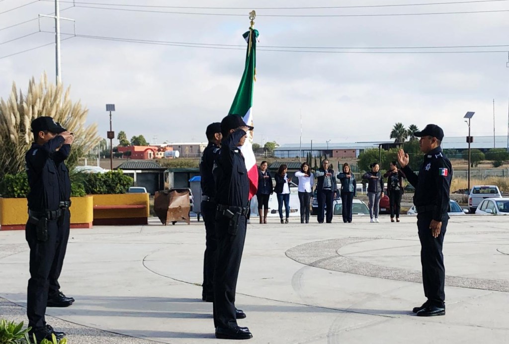 Bajo programa especial, se rindieron honores al lábaro patrio con la entonación del Himno Nacional, seguido por el Juramento a la Bandera y la lectura de las efemérides correspondientes a este mes, con la participación de la escolta de Seguridad Pública Municipal.