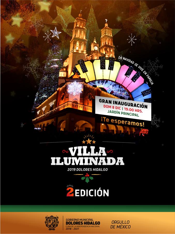 DOLORES HIDALGO CUNA DE LA INDEPENDENCIA NACIONAL, GTO.- La Presidencia Municipal y la Administración 2018-2021 invitan a la ciudadanía en general y turistas nacionales e internacionales a disfrutar del espectáculo del encendido de la Villa Iluminada 2019, a realizarse el próximo domingo 8 de noviembre a las 7 de la noche en el Jardín Principal.