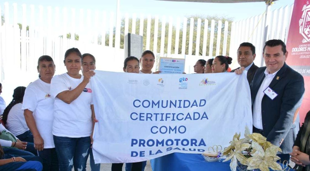DOLORES HIDALGO CUNA DE LA INDEPENDENCIA NACIONAL, GTO.- La Secretaría de Salud del Estado de Guanajuato a través del Centro de Salud de Dolores Hidalgo y el Presidente Municipal Miguel Ángel Rayas Ortiz, entregaron el certificado de Comunidad Promotora de la Salud a La Erre.