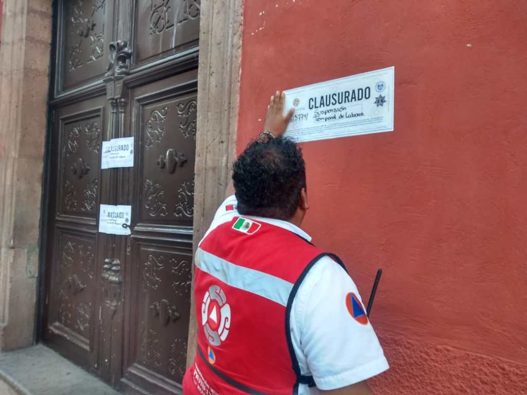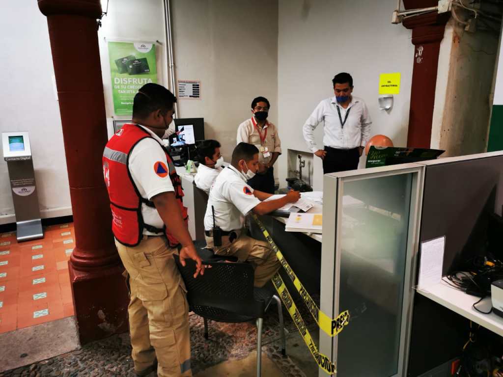 Luego, a las 6 de la tarde, los elementos de Protección Civil siguieron con la colocación de sellos de clausura en las puertas de la Banco BBVA Bancomer y a las 10 de la noche en Banco Azteca, debido al incumplimiento con la Ley General de Protección Civil, que en sus artículos 11, 38, 39 y 40 mandata que cuenten con un Programa Interno de Protección Civil, integrar la Unidad interna de PC, que emitirá junto con su consultor un Plan de Contingencia, en este caso para una situación extraordinaria de salud.