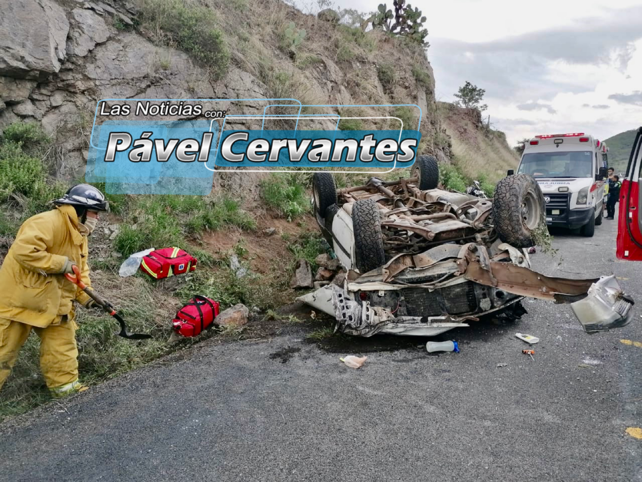 San Miguel de Allende.- Dos hombres fueron rescatados de entre los hierros retorcidos de una camioneta al volcar cuando transitaban sobre la carretera San Miguel de Allende a Guanajuato. El vehículo quedó destrozado de la parte frontal tras impactarse contra el talud del cerro y quedar sobre su toldo