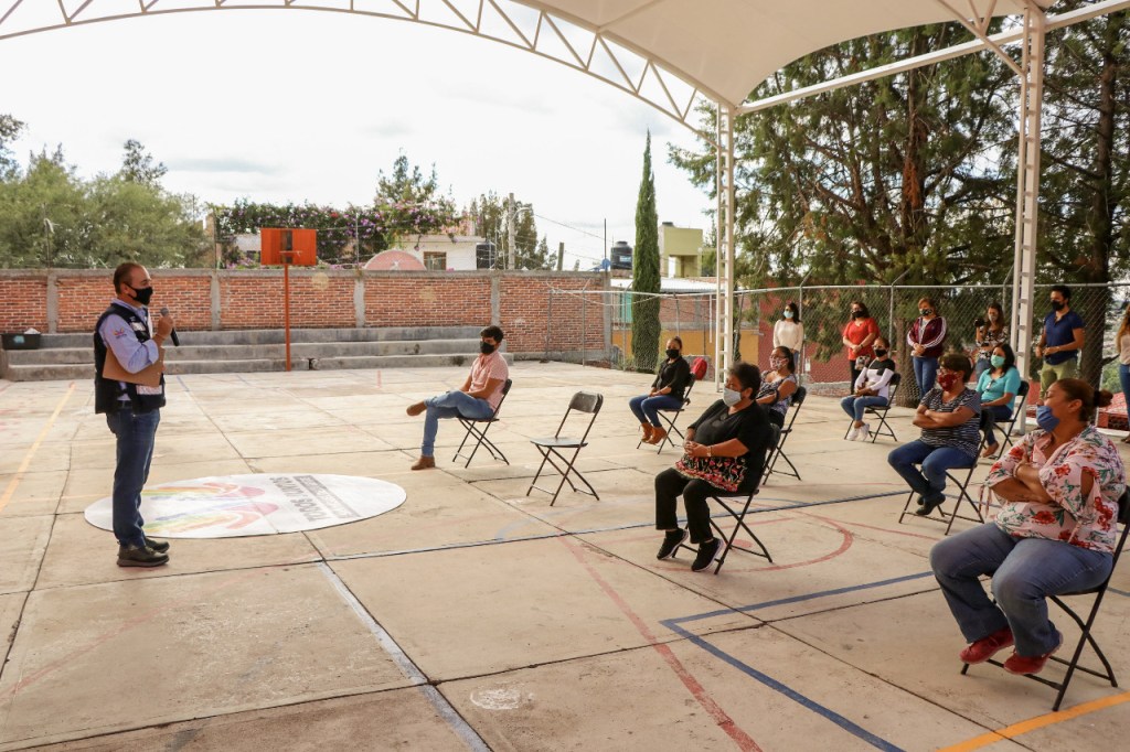 El munícipe se comprometió a hacer el tercer módulo de techado, cuando los padres de familia estén listos para aportar su parte del proyecto, y para motivarlos comentó: “Aquí también estoy viendo que si no le damos ahorita una manita de gato a los techos, el día de mañana ya no va a ser impermeabilizar, va a ser cambiar los techos, entonces, yo pongo el impermeabilizante y ustedes ponen la mano de obra y ahorita que estamos en la pandemia es el tiempo que podemos gastar nuestra energía en otras cosas y prepararnos para que nuestros niños se encuentren con estas sorpresas”.